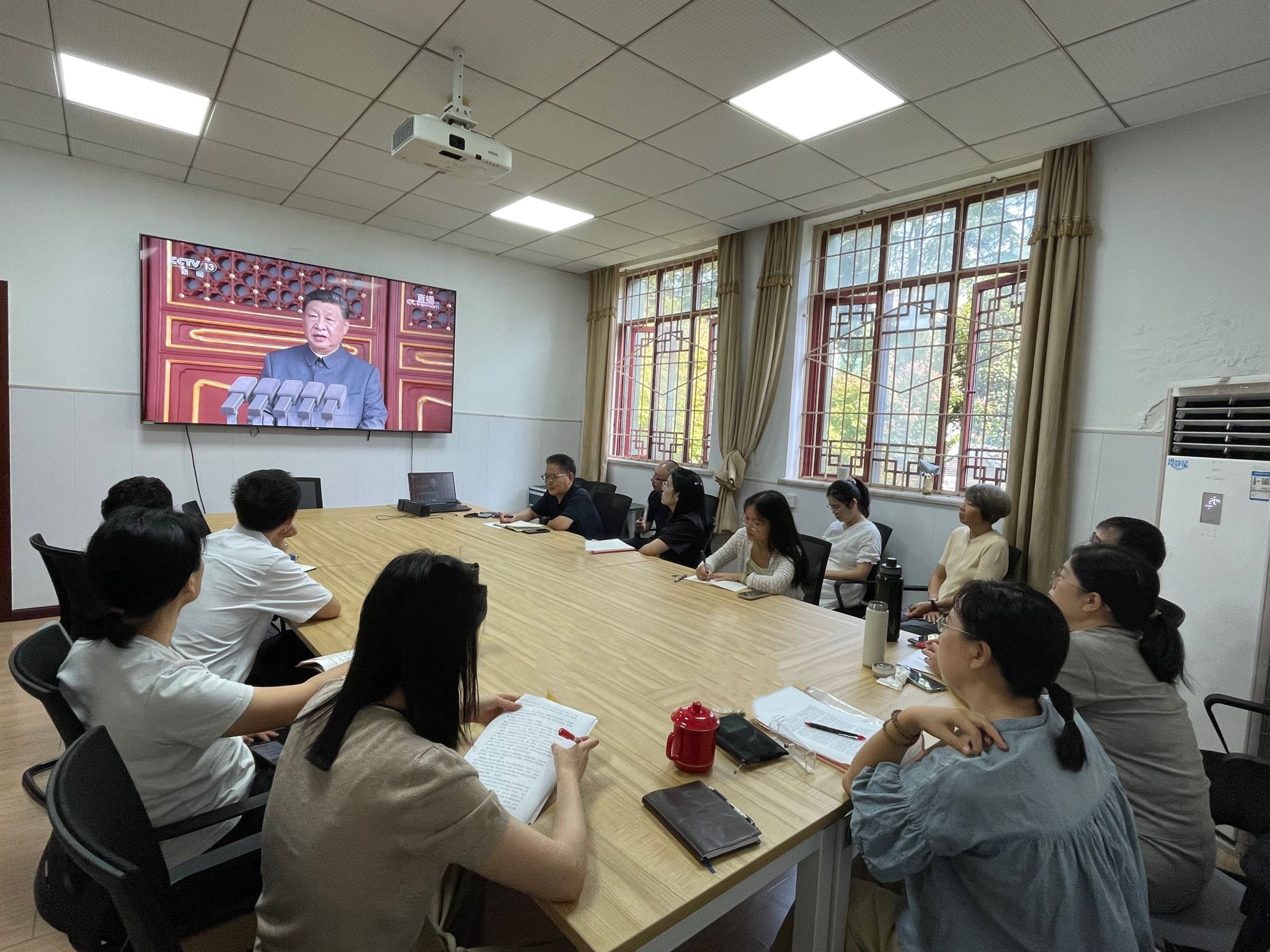 我院教师怀着无比激动的心情观看了这场盛会,习近平总书记的重要讲话和盛大的阅兵式在我院教师中引发热烈反响。习近平总书记的讲话深刻阐述了中国人民抗日战争在世界反法西斯战争中的重要地位和重大贡献,让我院教师更加深刻地认识到那段波澜壮阔的历史,更加坚定了铭记历史、缅怀先烈的决心。阅兵式上,受阅部队以威武雄壮的阵容、昂扬奋进的风貌,展示了人民军队的强大实力和高昂士气,让我院教师感到无比振奋和自豪。我院教师纷纷表示,要认真学习贯彻习近平总书记的重要讲话精神,从历史中汲取智慧和力量,进一步增强 “四个意识”,坚定 “四个自信”,做到 “两个维护”。同时,要大力传承和弘扬伟大抗战精神,将抗战精神融入到学习和工作中去,以更加饱满的热情、更加昂扬的斗志,为实现中华民族伟大复兴的中国梦而努力奋斗,为推动人类和平与发展的崇高事业贡献自己的力量。观看结束后,大家畅谈感想体会。