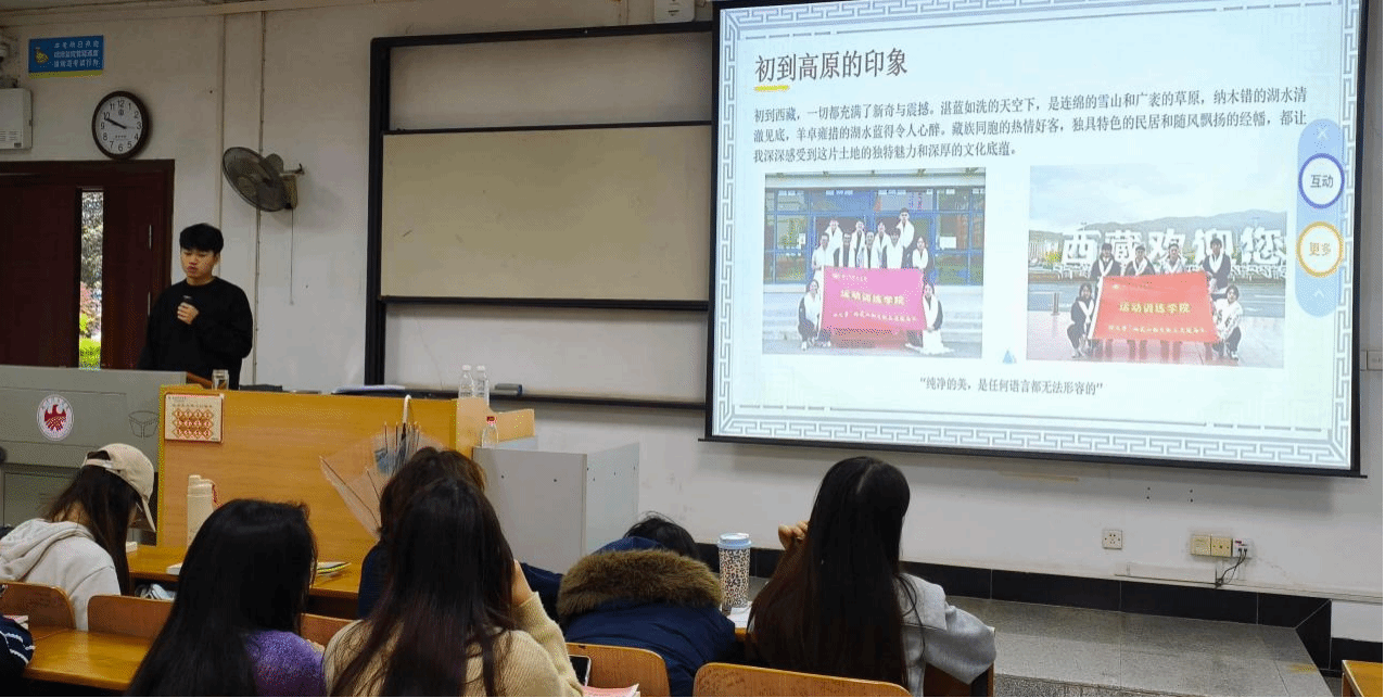今天,在思政课堂上,来自运动训练学院体能训练专业2023级的支教队员黄天乐给同学们分享了自己在雪域高原的难忘时光,他说,以前只是梦想着有朝一日能去西藏欣赏美丽的风景,当梦想实现之后才发现,在美丽的山川河流之畔,民族的团结与合作绽放的友谊之花更加靓丽,希望自己的绵薄之力能够带动更多青年融入建设祖国的伟大事业之中,让中华民族的和谐、团结、友谊之花能够永远绽放下去。(审核人 滕艳丽)